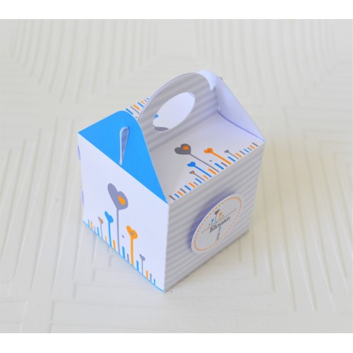 BOITE avec des petites fleurs graphiques composées de c?urs; jaune bleu et Blanche